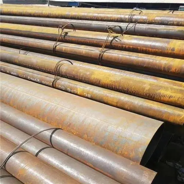 衡阳gb3087无缝钢管要用钢锭或实芯管料经破孔制成毛管,随后经热扎、冷轧或冷拨制成。衡阳gb3087无缝钢管在中国钢管业中具备重要的位置。据不完全统计,我国目前无缝管生产公司约240多家,无缝管机组约250多套,年产能力约450多万吨。从规格看,衡阳gb3087无缝钢管的原料是圆管坯,圆管胚要经过切割机的切割制作成长短约为1米胚料,并经输送带送至溶炉内加温。钢坯被送进溶炉内加温,温度约为1200℃。燃料为氢气或乙炔。炉内温控是关键性的难题.圆管坯出炉后要经过压力穿孔机开展穿空。一般较常见的穿孔机是锥形辊穿孔机,这类穿孔机生产效率高,产品品质好,破孔扩径量多,可穿多种钢种。破孔后,圆管坯就先后被三辊斜轧、连轧或挤压。挤压后应脱管定径。定径机根据锥形钻头高速运转入钢胚打孔,产生钢管。钢管内径由定径机钻头的直径长短来决定。钢管经定径后,进入冷却塔中,根据喷水冷却,钢管经冷后,就要被校直。钢管经校直后由输送带送往金属探伤机(或压力试验)进行内部探伤。若钢管内部有裂痕,气泡等问题,将被检测出。钢管质检后还要通过严格手工选择。钢管质检后,用漆料喷上编号、规格、生产日期等。并由吊车吊入仓库里。